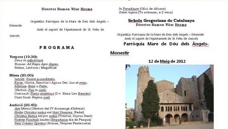 La parròquia del Monestir ja ha avançat que el cant gregorià tornarà a ressonar entre les pedres mil·lenàries de la basílica guixolenca amb el següent:
