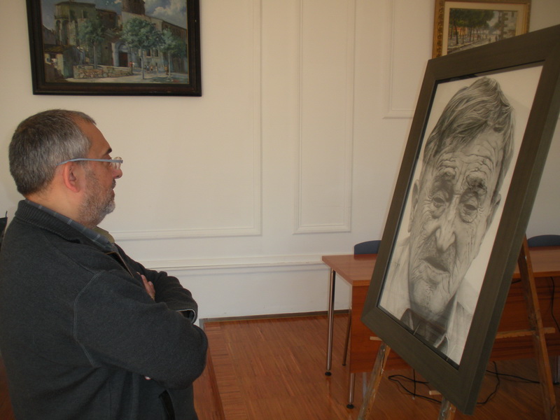 El pintor i dibuixant ganxó , Carles Piqueras, va lliurar la setmana passada en el saló de sessions de l’Ajuntament de Sant Feliu de Guíxols una de les 21 obres de personatges que durant l’any 2012 va exposar a la sala Abat Panyellas del Monestir de Sant Feliu.