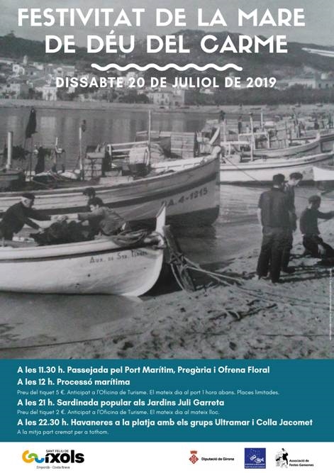 Aquest dissabte 20 de juliol té lloc la tradicional festivitat de la Mare de Déu del Carme a Sant Feliu de Guíxols. Les activitats previstes s’allargaran durant tot el dia i són les següents: