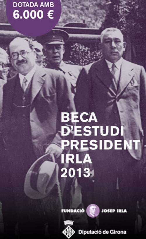 La Fundació Josep Irla, en conveni amb la Diputació de Girona, convoca la Beca d’Estudi President Irla 2013. Aquesta Beca, de caràcter anual, té com a objecte d’estudi el pensament, l’obra i la vida de la generació de republicans gironins de la qual Josep Irla i Bosch, president de la Generalitat a l’exili, i fill de Sant Feliu de Guíxols, n’és la personalitat més destacada.