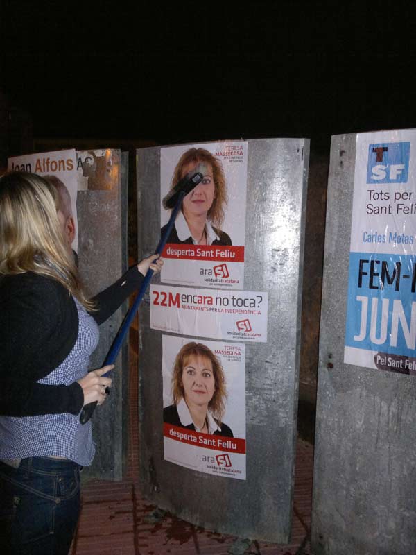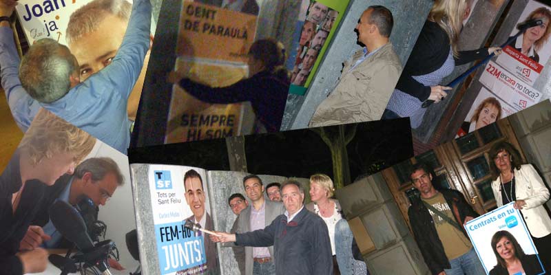 A les 00:00h del divendres, dia 6 de maig, ha començat oficialment la campanya electoral per a les Eleccions Municipals 2011 i, com és tradicional, s’ha fet amb l’enganxada de cartells, excepte el PSC, que ha penjat una falca de so traslladant l’acte simbòlic a les xarxes socials.
