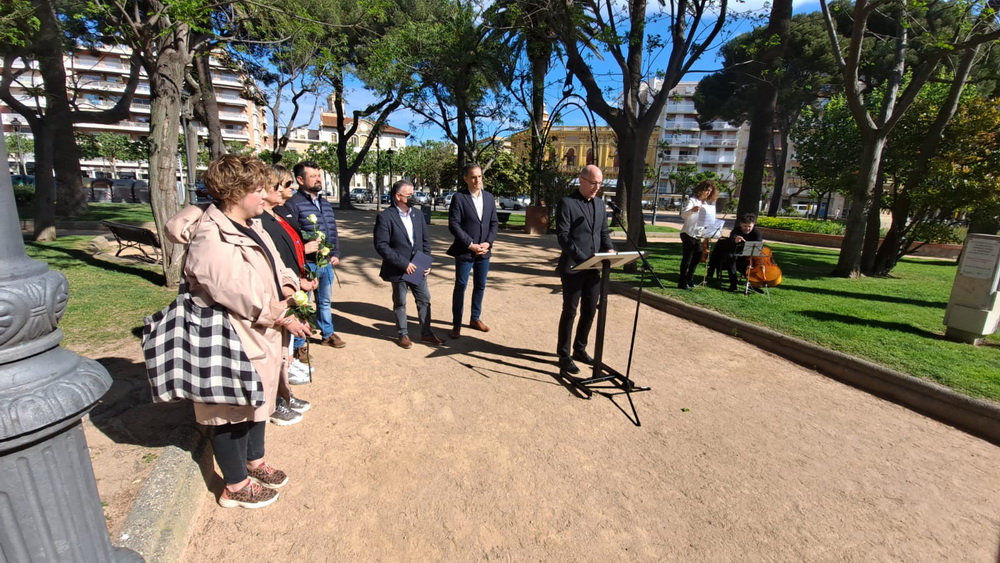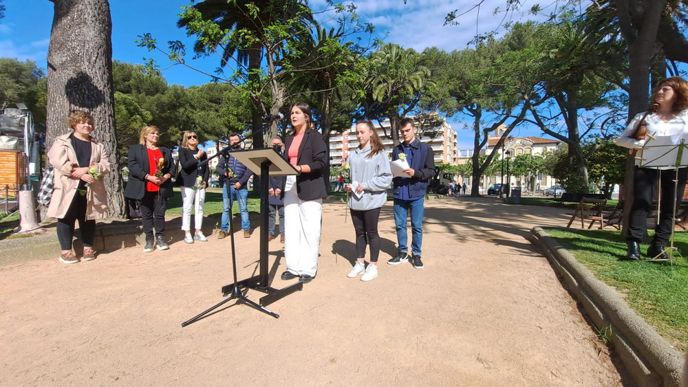 Són imatges de l'ofrena floral al monòlit situat als Jardins Juli Garreta de Sant Feliu de Guíxols aquest dijous 5 de maig, amb motiu del Dia d'Homenatge als deportats i morts a Mauthausen i en altres camps, i a totes les víctimes del nazisme.