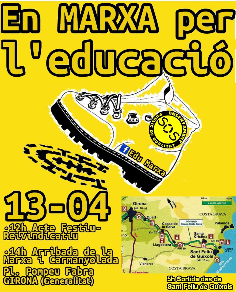 – Participar en l’organització, difusió i realització de l’Edu Marxa del 13 d’abril: una marxa per l’educació pública i de qualitat.