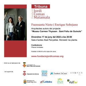 El proper divendres, 17 de juny, (20h) els arquitectes autors del projecte del Museu Carmen Thyssen de Sant Feliu de Guíxols, Fuensanta Nieto i Enrique Sobejano, realitzaran una conferència sobre aquest projecte.