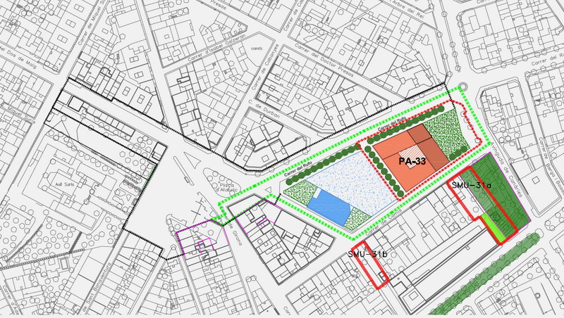 Per això, el conveni i la modificació de POUM fa possible l’ús residencial a canvi de la cessió d’unes de les illes per ser destinada a zona verda, aparcaments i equipaments, molt necessaris en una zona densament poblada i amb problemes importants de congestió i d’organització del trànsit. Concretament, l’illa a cedir és la delimitada pels carrers Rufo, Dos de Maig, Durban i Camís. Cal remarcar que aquest sector urbanístic es troba situat al bell mig de la trama urbana, a la confluència entre els barris de l’Eixample, Tueda i Vilartagues i a tocar de la plaça d’Alabric i de l’Asil Surís.