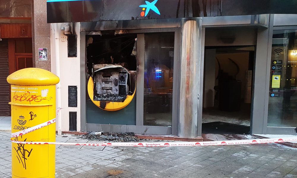 El caixer ha quedat totalment calcinat, si bé l’estructura de l’edifici i l’oficina bancària no s’han vist afectats. Tampoc cap persona ha resultat ferida. A més d’apagar el foc, els bombers han hagut de ventilar l’oficina de dues plantes traient un vidre per fer circular enfora la gran quantitat de fum que s’ha acumulat, ajudats d’un moto-ventilador. A les 5.15 hores el foc ha quedat apagat.