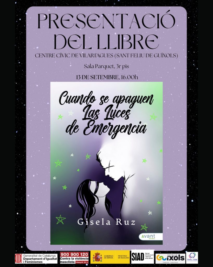 ‘Cuando se apaguen las luces de emergència’, és el segon llibre de l’escriptora Gisela Ruz que es presenta aquest dissabte 13 de setembre a les 4 de la tarda, al 3r pis del Centre Cívic Vilartagues de Sant Feliu de Guíxols.