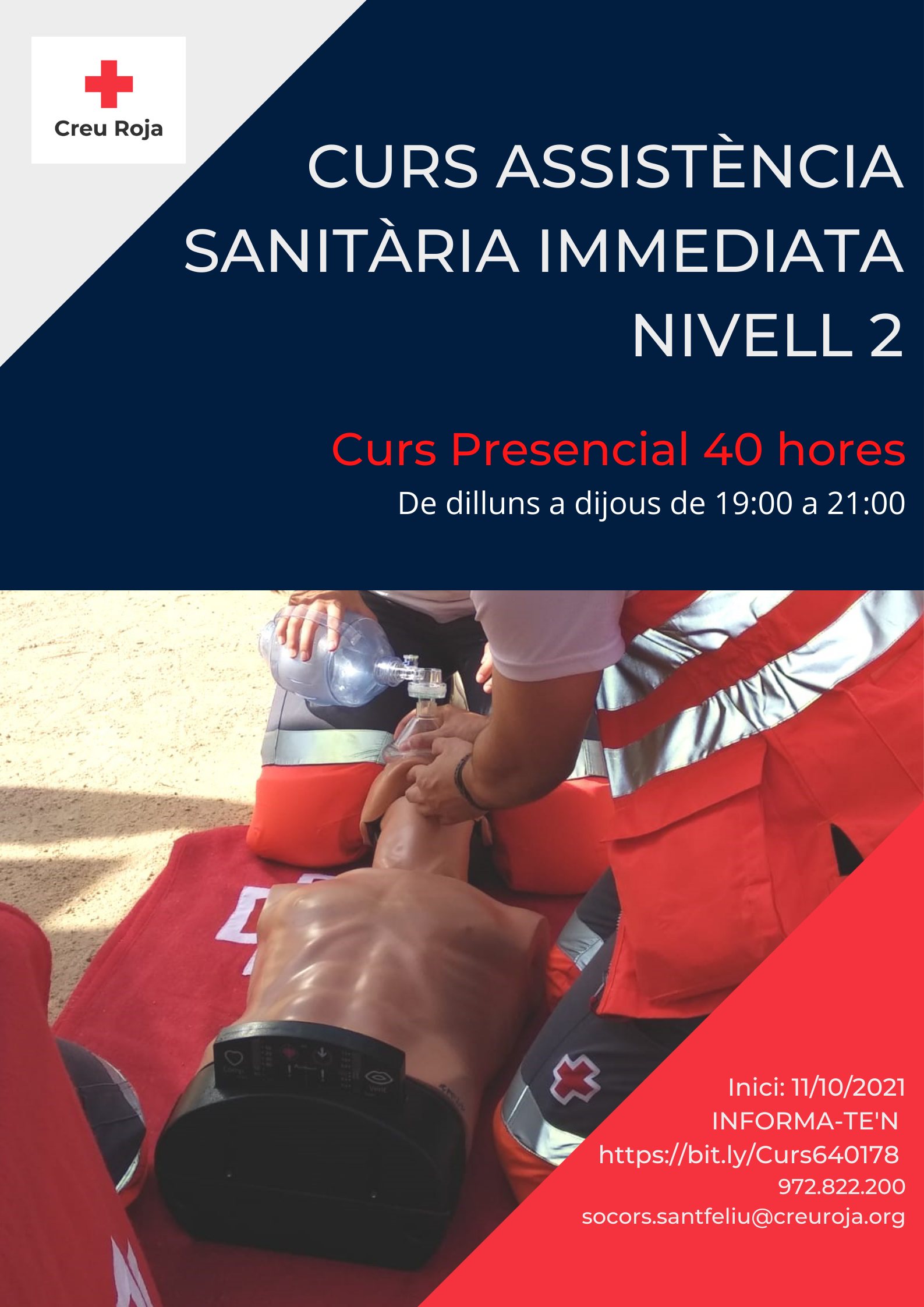 La Creu Roja de Sant Feliu de Guíxols i la Vall d’Aro organitza a partir del dia 11 d’octubre de 2021 un Curs d’Assistència Sanitària Immediata “Nivell 2” que es realitzarà de forma presencial a la seu de Creu Roja.
