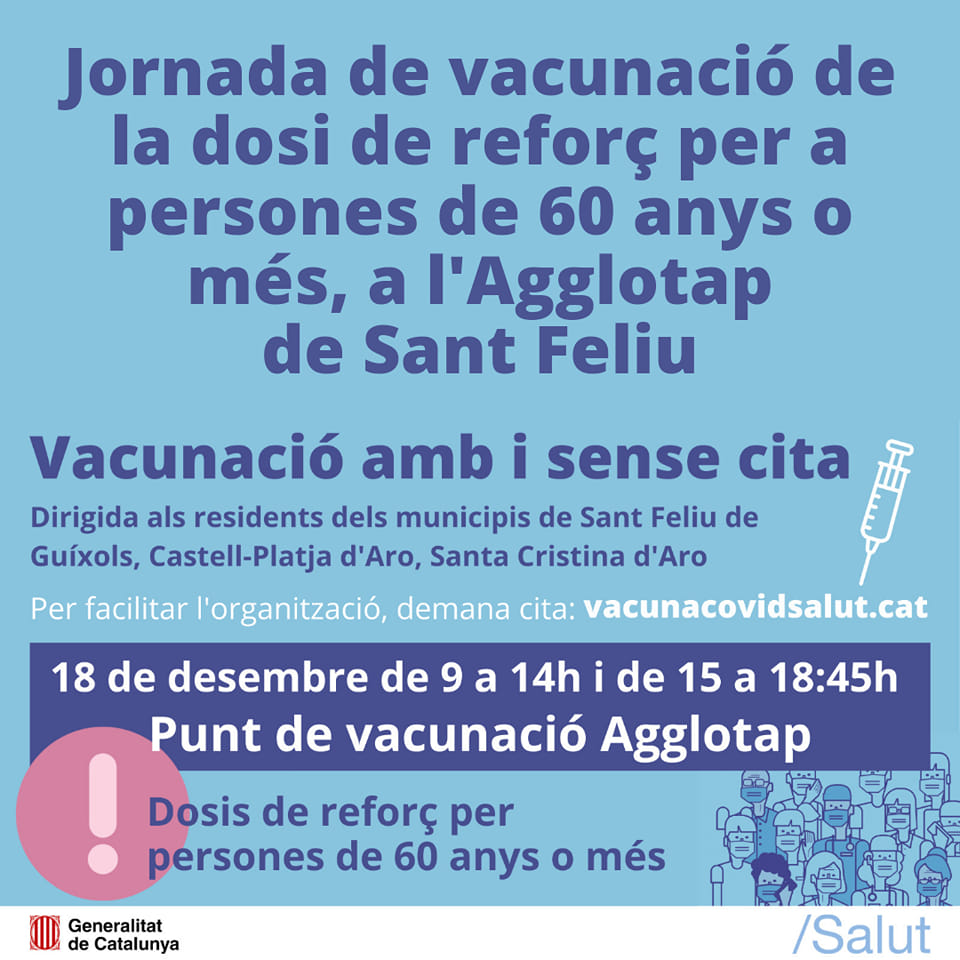 El Departament de Salut engega una jornada de vacunació de la dosi de reforç dirigida a les persones de 60 anys o més.