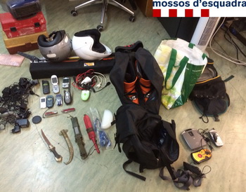 Entre els objectes recuperats hi havia telèfons mòbils, endolls, caixes d’eines, navalles i botes d’esquí, entre altres.