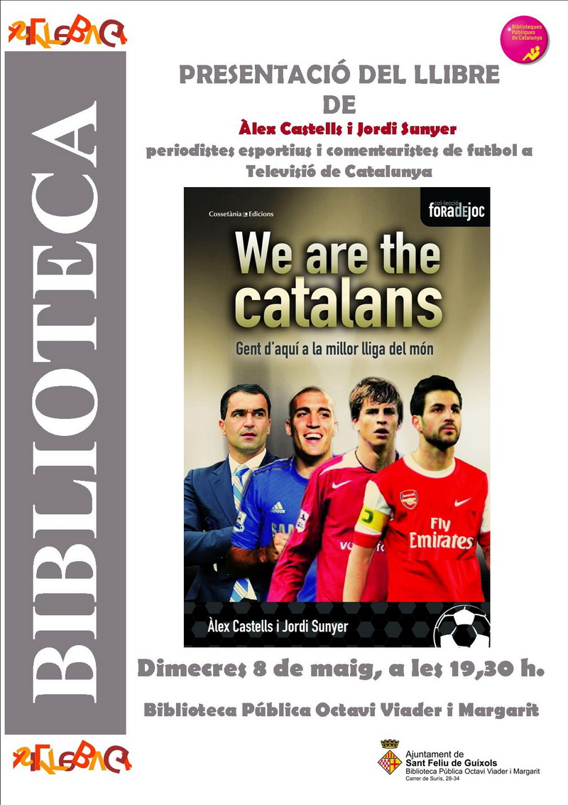 Dimecres 8 de maig, a dos quarts de 8 del vespre, el periodista ganxó, Jordi Sunyer i Àlex Castells presentaran el seu nou llibre We are the Catalans a la Biblioteca de Sant Feliu de Guíxols.