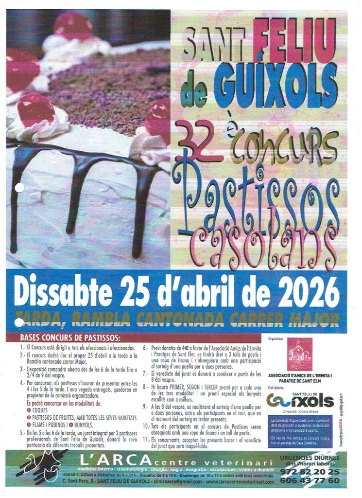 L’Associació d’Amics de l’Ermita i Paratge de Sant Elm ha organitzat per aquest dissabte una nova edició del seu tradicional concurs de pastissos casolans. Aquest any arriba a la seva 32a edició i se celebrarà a la La Rambla, cantonada amb el carrer Major.