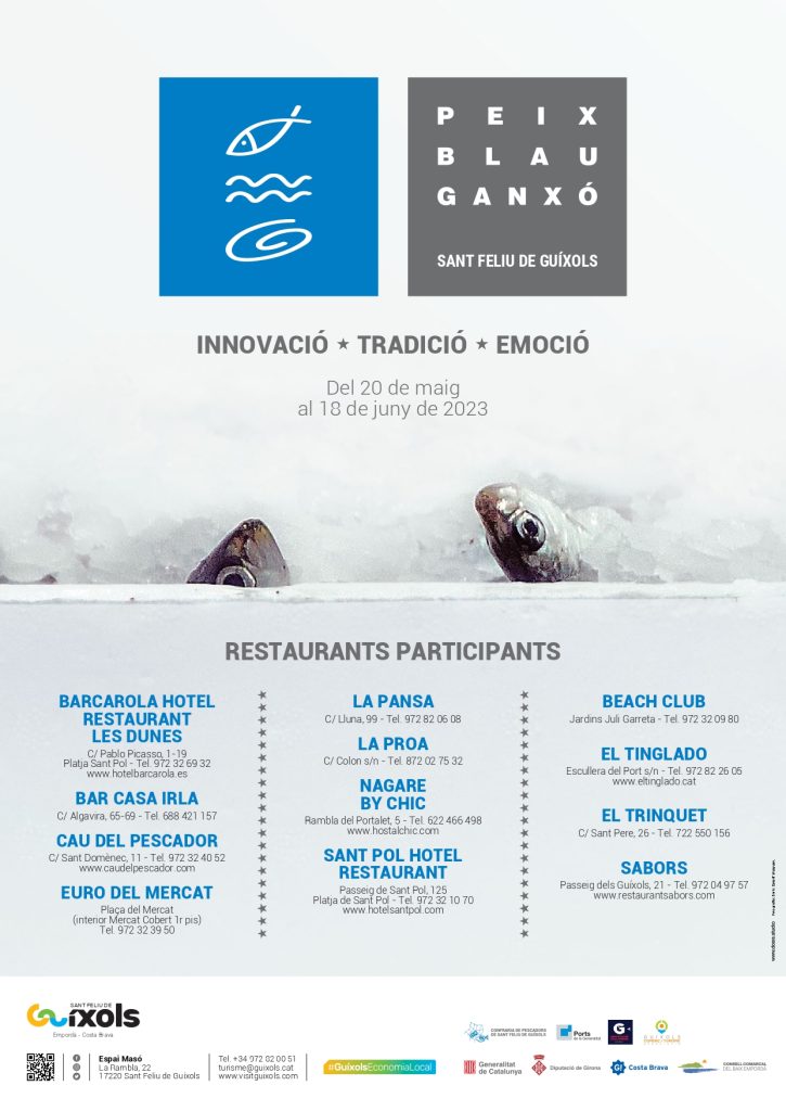 Aquest dissabte 20 de maig comença una nova edició de la tradicional campanya del Peix Blau on 12 restaurants de Sant Feliu de Guíxols oferiran plats preparats amb aquest peix com a protagonista. La proposta gastronòmica s’allargarà fins el 18 de juny i inclourà diversos tallers i show cookings.