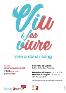 Aquest mes caldran 20.000 donacions de sang per donar resposta als tractaments i operacions previstos en clíniques i hospitals. L’agost és un mes en què habitualment baixen molt les donacions pel canvi d’hàbits de la ciutadania.