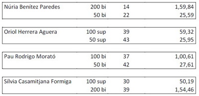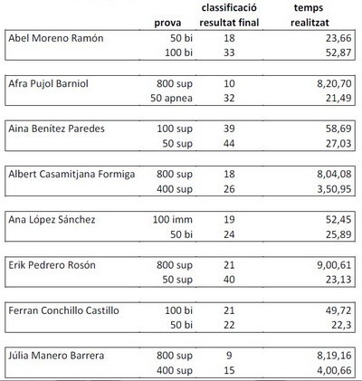 Aquesta ha estat la classificació de les nedadores i nedadors ganxons: