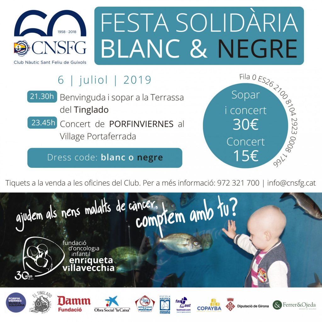 El Club Nàutic Sant Feliu de Guíxols dóna la benvinguda a la temporada d’estiu amb la Festa Solidària Blanc i Negre, la recaptació de la qual anirà destinada a la Fundació d’Oncologia Infantil Enriqueta Villavecchia. L’activitat tindrà lloc el dissabte 6 de juliol. A partir de les 21.30 hores hi haurà la benvinguda i a continuació, el sopar tipus buffet a la terrassa d’El Tinglado.
