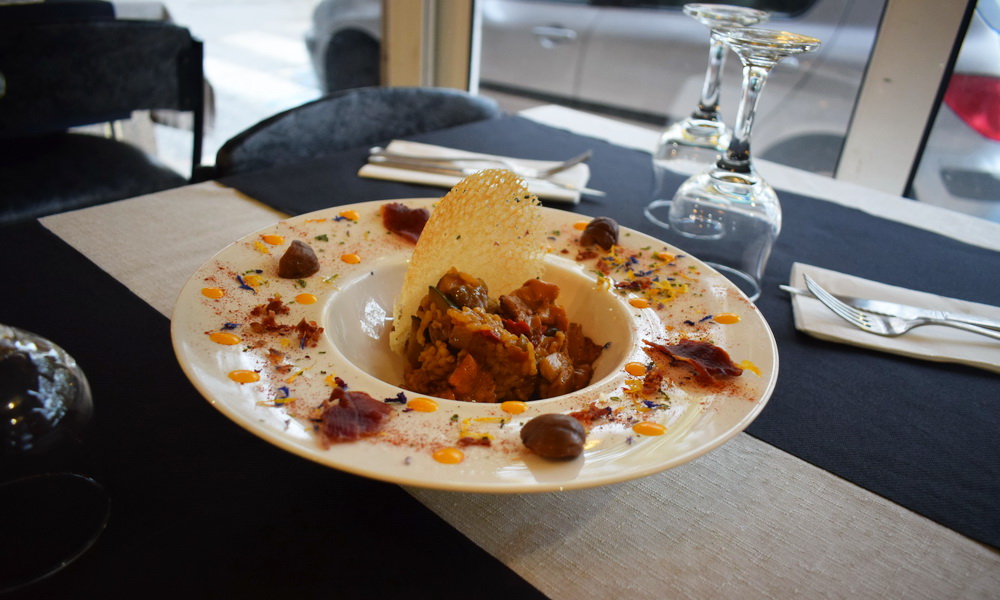 La tapa guanyadora estava feta amb carn de porc ibèric amb un variat de bolets, dels que en destaca el rossinyol, i verdures de temporada. A més portava encenalls de pernil, talls de castanya, crema de carbassa i un corall de verdures. Aquest arròs és pot trobar habitualment a la seva carta.