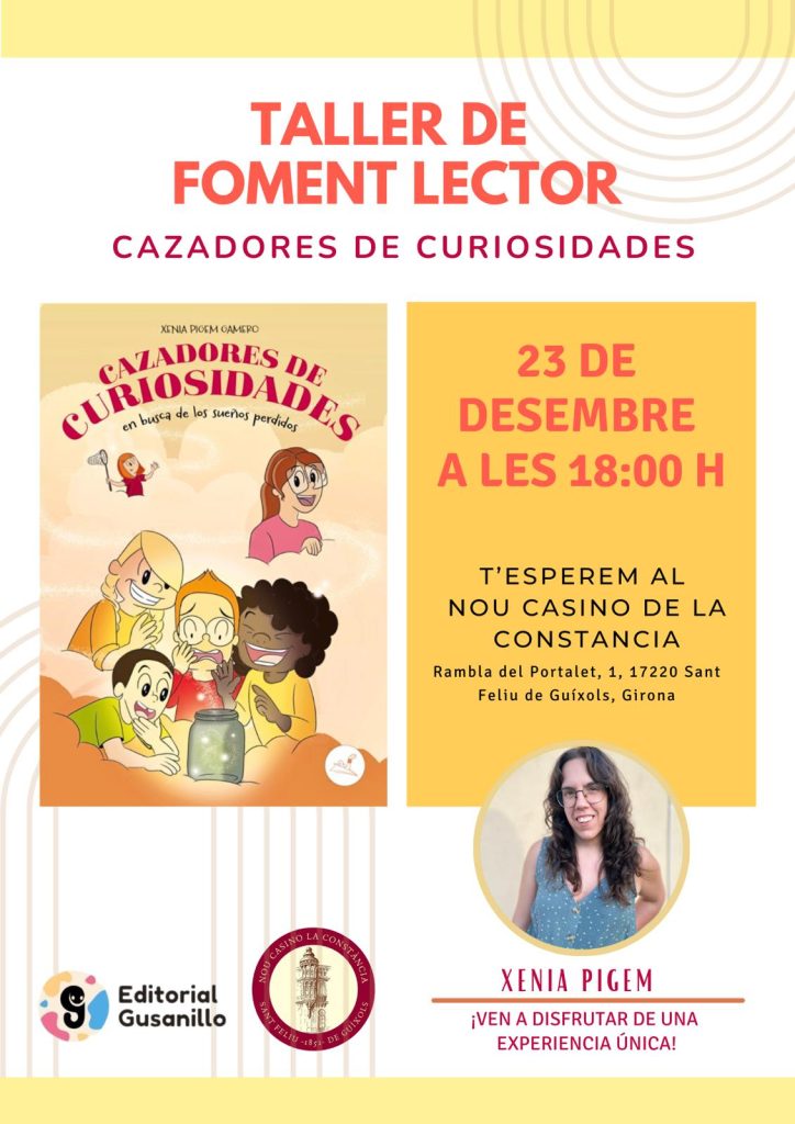 L’escriptora i infermera pediàtrica, Xènia Pigem, participarà en el taller de foment lector que organitza el Nou Casino La Constància avui dimarts 23 de desembre a partir de les 6 de la tarda, amb entrada gratuïta.