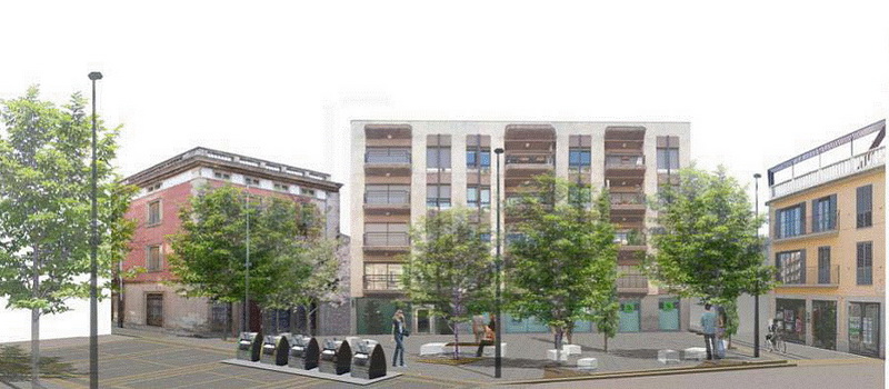 El projecte que està valorat en 381.035.-EUR dels quals 176.974.-EUR estan finançats amb una subvenció de PUOSC de la Generalitat, minimitza els desnivells actuals, resol la impermeabilització de l’aparcament i trasllada el centre transformador a l’antic accés d’ambulàncies de l’hospital pel carrer del Mall. Per tal d’embellir l’espai, el projecte proposa la plantació d’arbrat i la col·locació de mobiliari urbà mòbil; a més des de l’Ajuntament s’ha afegit la proposta de soterrament de les escombraries amb un sistema innovador.