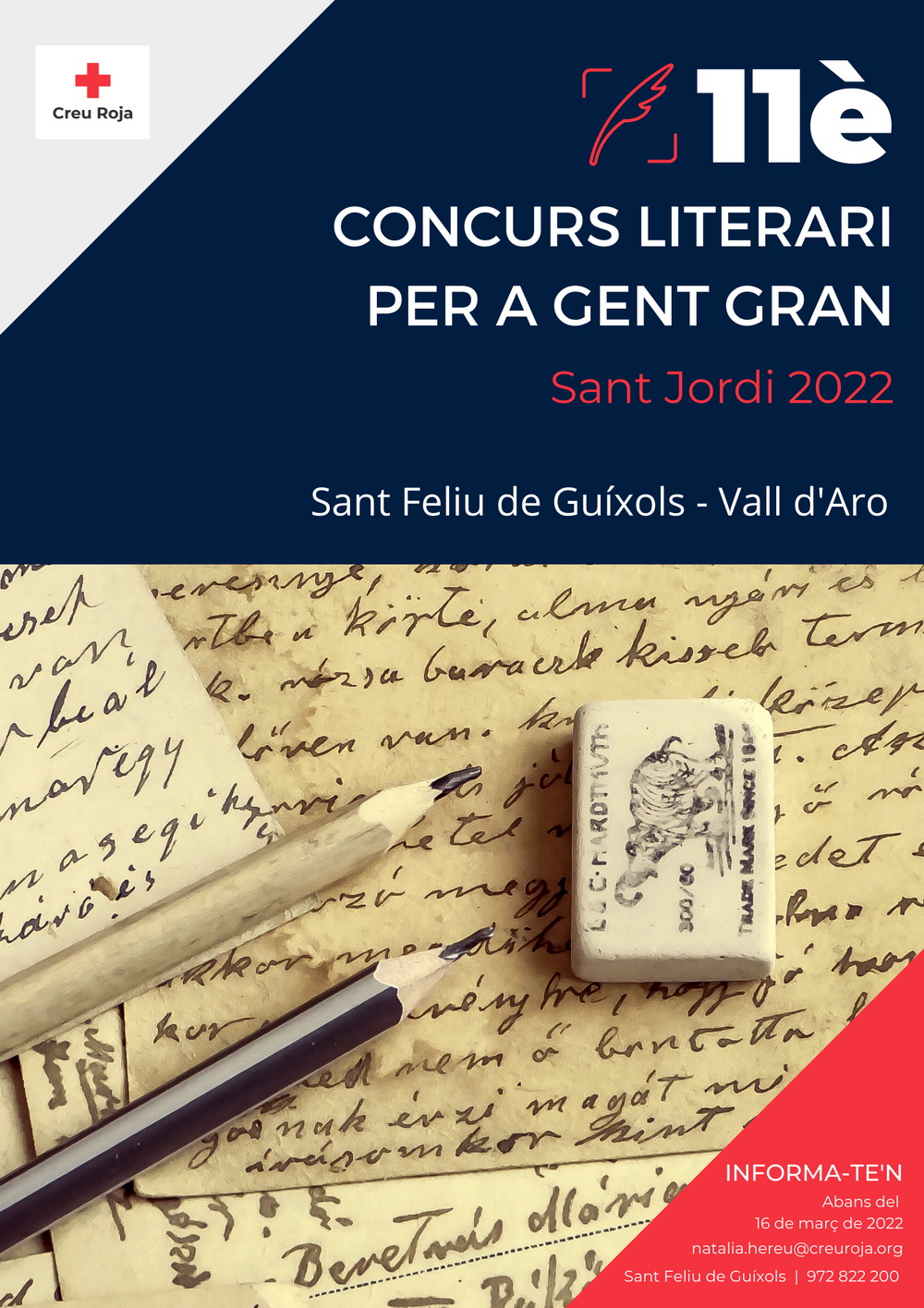 En marxa l’onzena edició del ‘Concurs literari de la gent gran’ de Creu Roja Sant Feliu de Guíxols-Vall d’Aro. Està adreçat a persones de 65 anys o més, que vulguin escriure històries, vivències, experiències, etc.