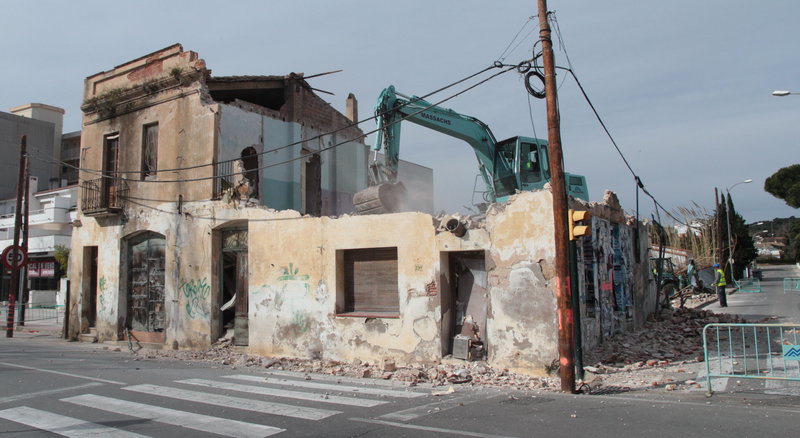 El primer permís d’enderroc pactat amb la propietat establia el 15 d’octubre com a data límit per executar-lo, però la detecció d’uralita als teulats va imposar l’adopció de mesures especials per retirar el material. La darrera data acordada va ser la primera quinzena de gener, però el tinent d’alcalde de Planificació Urbanística, Josep Maria Solé, va explicar que el darrer entrebanc de l’obra ha estat l’endarreriment de l’empresa Telefónica en la retirada de la línia telefònica que discorria entre dos pals a banda i banda de la façana. El cost de la demolició ha anat a càrrec dels propietaris de la finca, que podran edificar un nou edifici en la part de la parcel·la no afectada com a nova vorera i carril d’aparcaments.