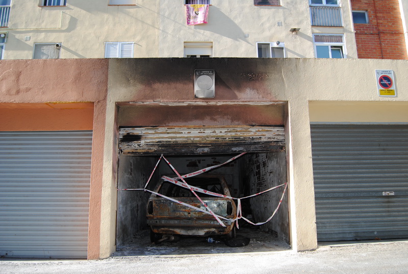 El foc no es va propagar a la resta de garatges ni als habitatges però va deixar totalment calcinat el vehicle i va malmetre la persiana de l’aparcament que encara continua amb els precintes i en el mateix estat, a l’espera d’enretirar el cotxe i de procedir a la neteja i tancament del garatge per motius de seguretat.
