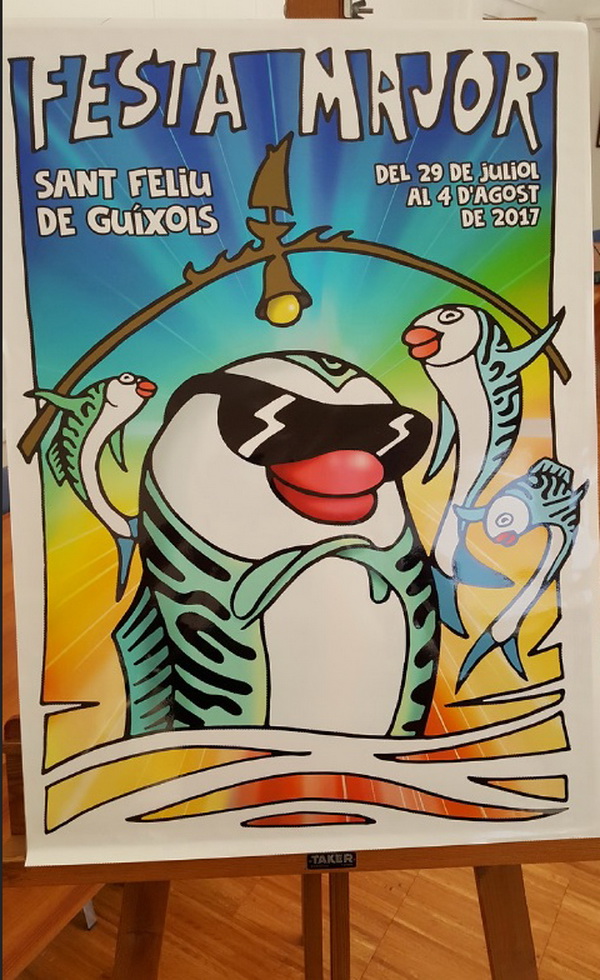 Un peix blau que surt de l’aigua, amb actitud una mica xulesca i provocativa, amb ulleres de sol, que es posa davant de tothom i diu… “me’n vaig de festa major”. Aquest és el missatge que vol transmetre, i transmet, el cartell, presentat aquest dimarts 27 de juny als mitjans de comunicació.