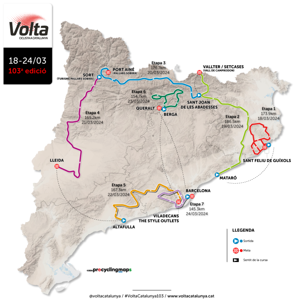 Ahir es va presentar a l’Institut Nacional d’Educació Física de Barcelona la 103 edició de la Volta a Catalunya que tindrà Sant Feliu de Guíxols com a sortida i arribada de la primera etapa. Com a novetat aquest 2024, la prova a la nostra ciutat sortirà des del port, a l’alçada del Club Nàutic.