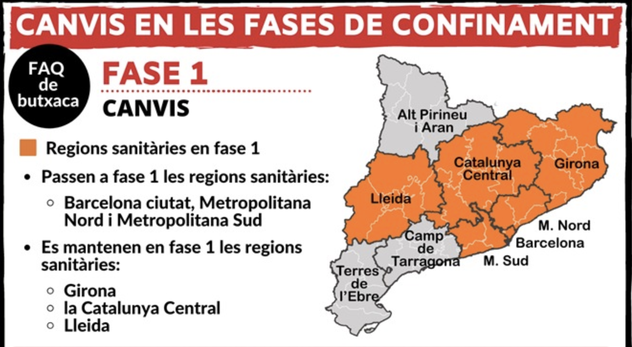 El govern espanyol va publicar el dia 23 de maig l’Ordre SND/440/2020 al BOE on es contemplen canvis en les autoritzacions de certes activitats a la fase 1. A partir d’avui dilluns dia 25 de maig es flexibilitzen algunes mesures. Les següents: