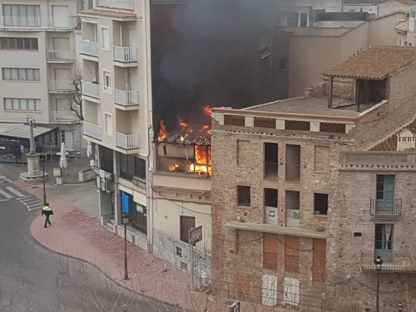 Els Bombers i la Policia Local hi ha fet acte de presència per apagar el foc i per evacuar les finques de l’entorn de forma preventiva, al temps que s’ha enderrocat l’estructura sobreposada de l’edifici que ha estat la més afectada.