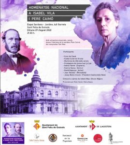 El proper dilluns 29 d’agost a les 21.30h a l’Espai de La Sardana, dels Jardins Juli Garreta de Sant Feliu de Guíxols, es farà un “Homenatge Nacional a Isabel Vila i Pere Caimó”.