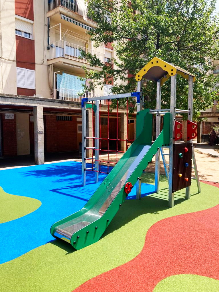 També s’hi ha posat un nou parterre de cautxú, com ja s’ha fet en la reforma dels altres parcs infantils en els quals el consistori ha actuat en els darrers mesos. A l’espai també s’hi han col·locat dos bancs nous.