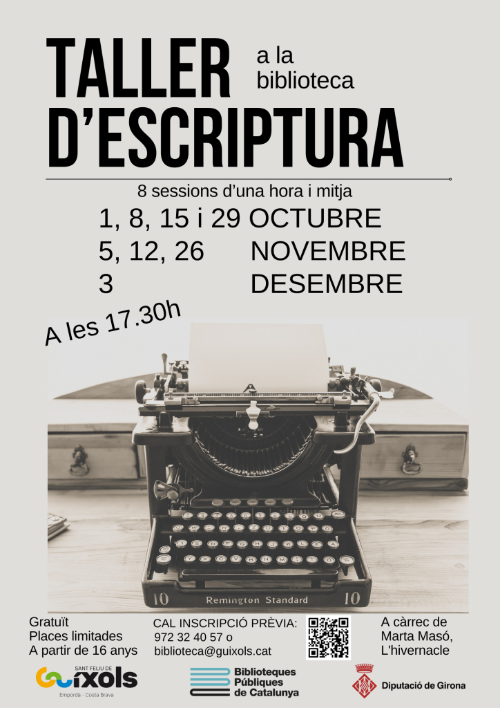 La Biblioteca Pública Octavi Viader i Margarit ha obert les inscripcions pel taller d’escriptura creativa que se celebrarà entre els mesos d’octubre i desembre i que anirà a càrrec de Marta Masó de L’hivernacle.