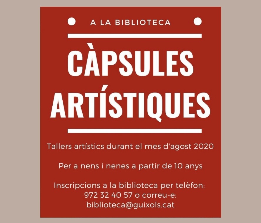 Podeu inscriure-us als tallers enviant un correu electrònic a biblioteca@guixols.cat o bé trucant al 972 32 40 57.