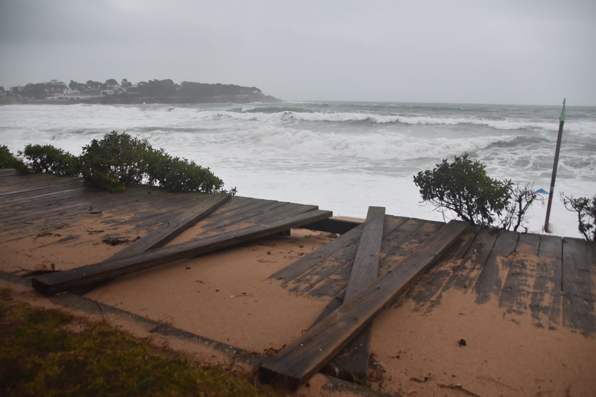 No hi ha un termini clar de restitució d’aquesta part descalçada de mirador, i s’apunta a uns quatre o cinc mesos. La platja presenta altres danys, com brutícia acumulada pel mar, objectes voluminosos com troncs, fustes i altres elements aportats per la corrent, i s’han registrat també danys en algunes passeres de l’entitat Llop de Mar.