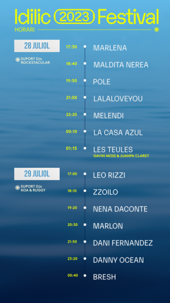 Aquest divendres 28 de juliol comença a Sant Feliu l’Idilic Festival, que portarà fins a l’escenari del Guíxols Arena a importants artistes del panorama musical com són Melendi, Nena Daconte, La casa azul, Maldita Nerea, Dani Ocean o Daniel Fernández, entre altres. La proposta musical tindrà una durada de dos dies, allargant-se fins dissabte.