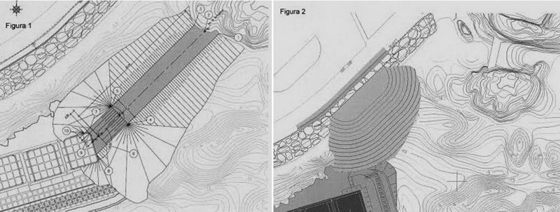 La solució que s’ha trobat és construir una berma sense modificar la coronació (figura 2) a tocar de la base de l’escullera, en els 50 primers metres d’escullera i salvada la riera (abans del punt en que aquesta fa un lleuger canvi de sentit), construcció que estaria coronada per una peça anomenada “botaones”.