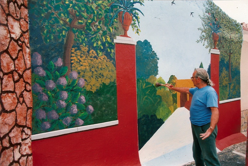 Manera també es va oferir a pintar murals que deixaran testimoni del seu pas i el seu altruisme com els de l’aparcament de l’antiga Xaica, on va imprimir una glosa al bot de salvament Miquel de Boera o el de la plaça Alabric que il·lustra la continuació d’un barri imaginari.