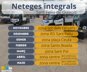 Aquest és el calendari de les neteges integrals per als propers mesos que es faran l’ultim dimecres de mes: