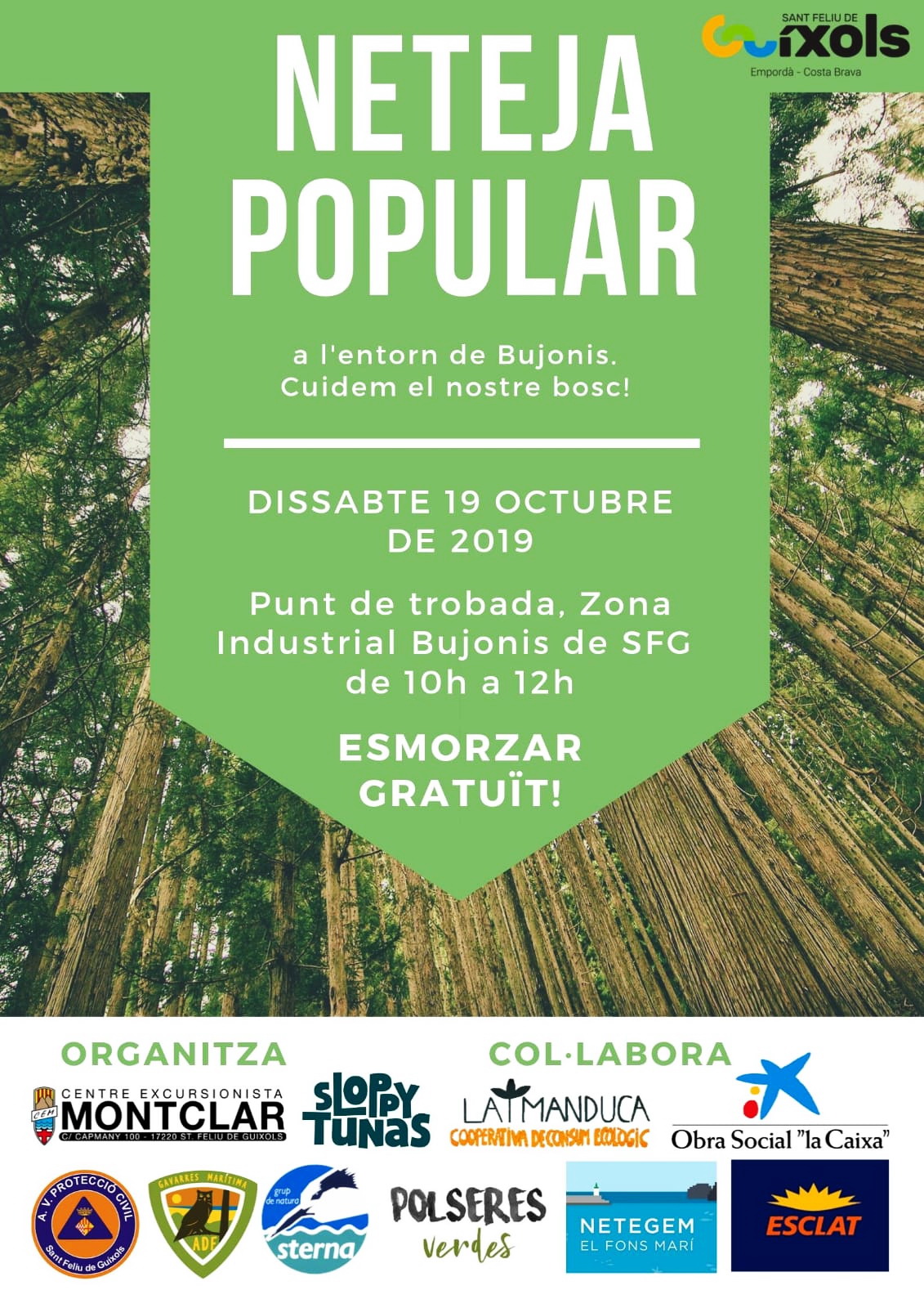 El Centre Excursionista Montclar, juntament amb La Manduca, Sterna, Sloppy Tunas, ADF, Polseres Verdes, Netegem el Fons Marí i Protecció Civil, organitzen una neteja popular al sector Bujoins de la ciutat pel proper dissabte 19 d’octubre.