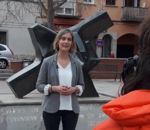 (Jéssica Albiach a la plaça Salvador Espriu durant la mateixa visita).