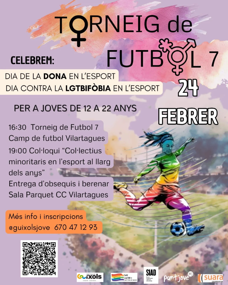 Coincidint amb la commemoració del Dia Internacional de la Dona i la Nena en l’Esport i el Dia Contra la LGBTIfòbia en l’Esport, s’ha organitzat un torneig de futbol 7 pel dimarts 24 de febrer al Camp de Futbol de Vilartagues. Començarà a les 16.30 hores.