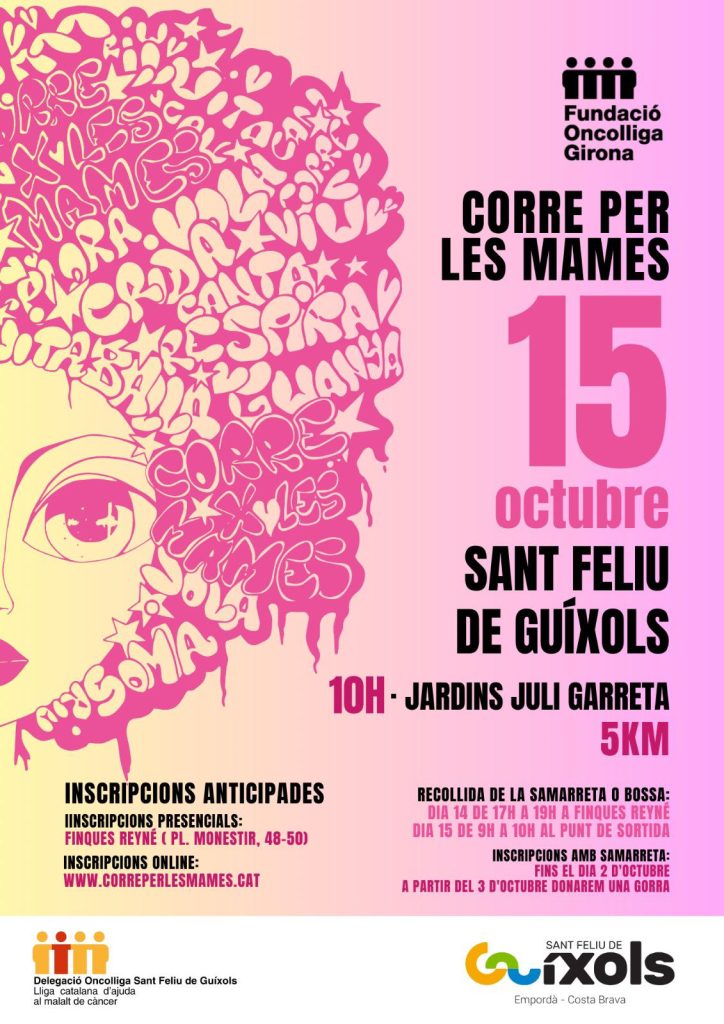 La delegació d’Oncolliga de Sant Feliu de Guíxols organitza a la ciutat una cursa solidària per recollir fons per la lluita contra el càncer de mama. Sota el nom de ‘Corre per les mames’, l’activitat es farà el diumenge 15 d’octubre al matí.