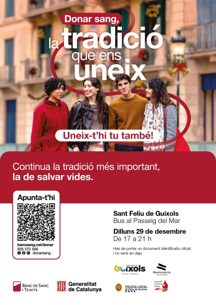 L’activitat s’emmarca dins la campanya ‘La tradició que ens uneix’ que està impulsada pel Banc de Sang i Teixits amb la intenció de fer una crida per instaurar la tradició de donar sang amb familiars, amics o colles, durant el Nadal.