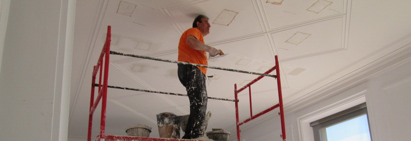 La Sala de Plens de l’Ajuntament de Sant Feliu ha necessitat una mena de cirurgia per tal d’assegurar el sostre que havia cedit més de 8 centímetres amb el perill de despreniment que podia suposar si no s’hi feia una intervenció.