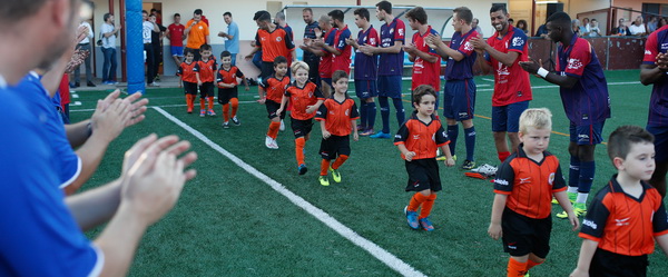 Puntualment a les 18:00 començava la Presentació que va comptar amb el periodista ganxó Jordi Sunyer com a mestre de cerimònies, que després de donar la benvinguda als assistents i a les autoritats, va donar pas als 22 equips de l’Escola de Futbol Sant Feliu que van entrar al camp per un passadís que formaven els jugadors del Guíxols i Vilartagues. Prop de 310 jugadors acompanyats dels prop de 40 tècnics van situar-se al terreny de joc per donar pas a les paraules del capità del Juvenil A, Xavier Busquets i a Lluis Baena, coordinador del Futbol Base, que van demanar als assistents suport al llarg de tota la Temporada.