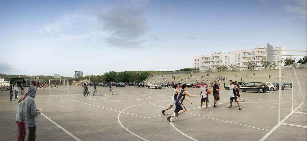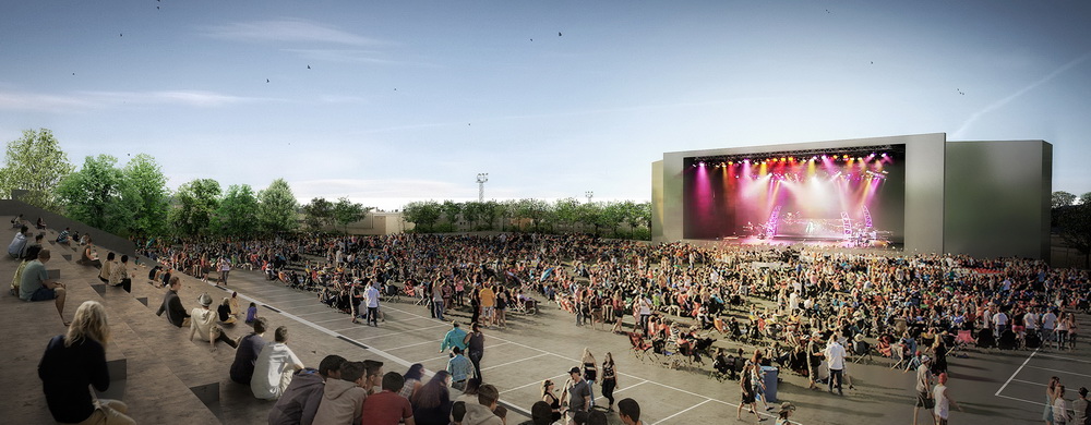 La zona del darrere de l’Institut Sant Feliu i del camp de futbol de Vilartagues, coneguda com a Guíxols Arena, tindrà l’aspecte que es mostra en dues simulacions un cop s’hi hagin realitzat les obres que aquest dilluns, 11 d’abril, han sortit a contractació pública. Tal i com s’intueix en les il.lustracions, apareix un gran equipament de 9.723 m² , amb capacitat per a unes 8.000 persones quan s’hi facin espectacles musicals de gran format (per exemple, del Festival de la Porta Ferrada – o d’altres productors), amb unes grades fixes per a uns 1500 espectadors i altres usos cívics, culturals, esportius o socials. L’obra, que preveu arranjar el desnivell existent i el soluciona amb una grada, incorpora un sistema de drenatge d’aigua, hi fa sortir dues pistes polivalents obertes i esdevé un equipament públic obert ambiciós.