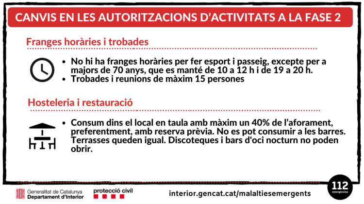Amb l’entrada a nova fase, es flexibilitzen una mica més les mesures restrictives contra el coronavirus. Tot seguit en repassem les més importants: