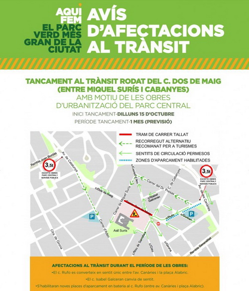 Degut a les actuals afectacions, el carrer Rufo es convertirà en sentit únic entre l’avinguda Canàries i la plaça d’Alabric. D’altra banda el carrer d’Isabel Galceran canviarà de sentit.