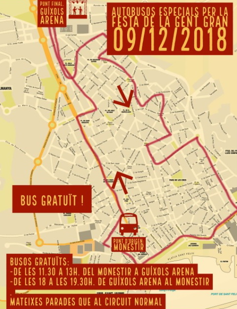 Per poder arribar a l’envelat hi ha un servei gratuït de bus d’anada i tornada que fa el mateix recorregut que el bus urbà però sortint del Monestir.